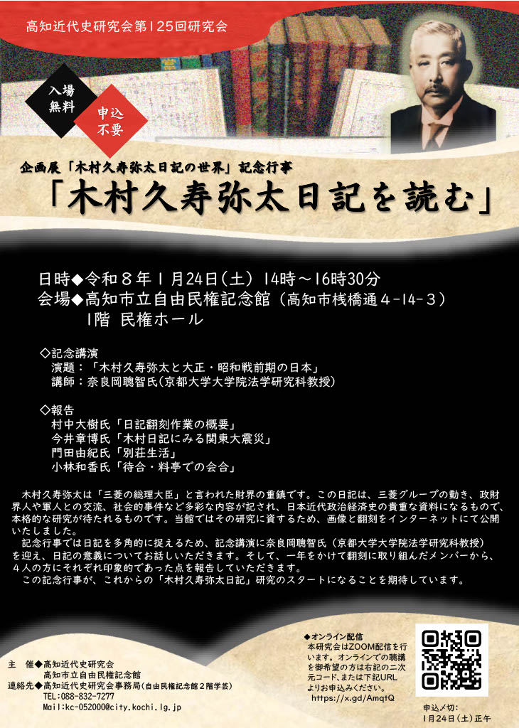 高知近代史研究会会員以外の方も御聴講いただけますので、ぜひお気軽に御参加ください。