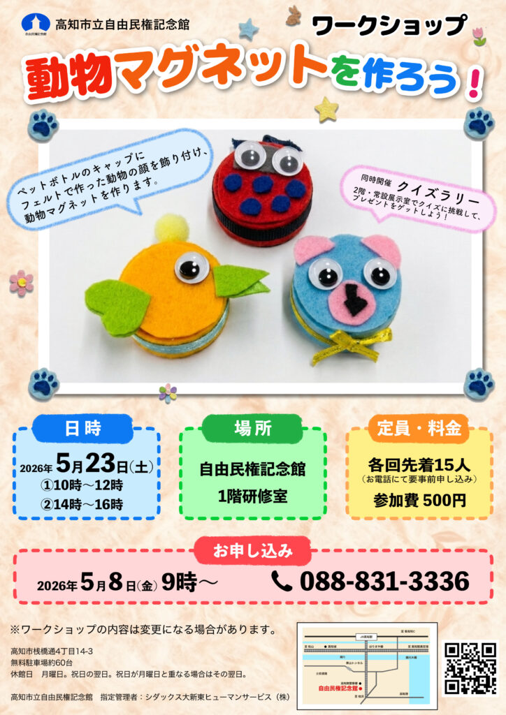 当館では、5月23日(土)に手作りワークショップを開催します。